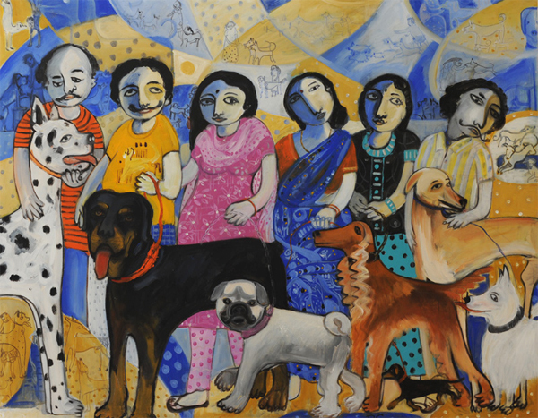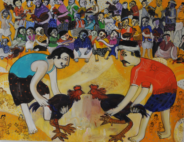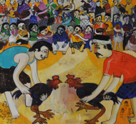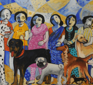 Saravanan.P started his carrier as a banner artist, where he ran a commercial studio doing sign boards, portraits, film hoardings for about twenty years. He was exposed to books on art and seeing different shows he slowly got more inclined to pursue pure painting. While painting when the neighbouring children would pile in to see his work, he got inspired by their simplistic and playful ways of looking at life and started adapting to a child's language of looking at reality. There is an element of humour which underlies his way of looking. He has participated in several group shows in Pondicherry.